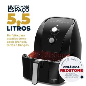 A Air Fryer Britania BFR50 Redstone, com 1500W e capacidade de 5,5 litros, utiliza circulacao de ar quente para preparar alimentos deliciosos, crocantes e muito mais saudaveis, sem oleo. Seu revestimento antiaderente Redstone facilita a higienizacao e garante preparo uniforme, ideal para carnes, batatas, paes, petiscos e muito mais. Ja a Batedeira Perola 550 Neve 4,3L, com potencia de 500W, 4 velocidades + turbo e 2 pares de batedores, traz forca e versatilidade para massas leves, claras em neve, bolos, cremes e tortas, com a praticidade da unidade motora portatil.