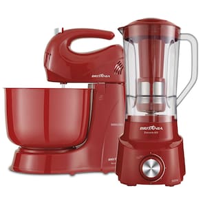 Liquidificador com 4 velocidades + pulsar e autolimpeza. Batedeira com 4 velocidades + turbo e corpo removível para uso portátil.