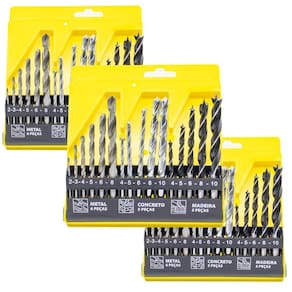 Kit 03 Jogo Broca Mix 48 Peças Para Madeira Concreto Metal O Kit 03 Jogo Broca Mix 48 Peças é perfeito para quem precisa de um conjunto completo de brocas de alta qualidade para realizar trabalhos em madeira, concreto e metal. Com esse kit, você terá todas as brocas necessárias para perfurar diferentes materiais, garantindo praticidade e eficiência em suas tarefas. As brocas de madeira possuem tamanhos de 4mm, 5mm, 6mm, 8mm e 10mm, proporcionando versatilidade para perfurar diversos tipos de madeira. Já as brocas de concreto têm os mesmos tamanhos, garantindo a precisão necessária ao trabalhar com esse material. E para perfurar metal, o kit conta com brocas de 2mm, 3mm, 4mm, 5mm, 6mm e 8mm, atendendo às suas necessidades em projetos metálicos. Além disso, as brocas desse kit são fabricadas com materiais de alta qualidade, garantindo durabilidade e resistência. Com pontas afiadas e design eficiente, elas proporcionam uma perfuração precisa e sem esforço, facilitando o seu trabalho. O Kit 03 Jogo Broca Mix 48 Peças é ideal tanto para quanto para uso doméstico, permitindo que você realize uma ampla variedade de tarefas, como montagem de móveis, instalação de prateleiras, fixação de quadros e muito mais. Com esse kit, você estará preparado para qualquer desafio. Compre agora o Kit 03 Jogo Broca Mix 48 Peças e tenha em mãos todas as brocas que você precisa para realizar seus trabalhos com eficiência e precisão. Não perca tempo e adquira já o seu!