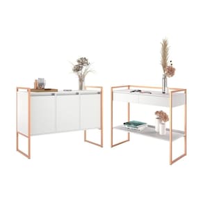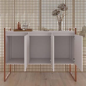 PRODUTO: Conjunto Buffet e Aparador Industrial Branco Cobre | ALTURA DO PRODUTO (CM): 87 | LARGURA DO PRODUTO (CM): 120 | COMPRIMENTO DO PRODUTO (CM): 41 | PESO DO PRODUTO (KG): 51,2 | COR PREDOMINANTE: Branco | ALTURA DO PRODUTO COM EMBALAGEM (CM): 25 | LARGURA PRODUTO COM EMBALAGEM (CM): 43 | COMPRIMENTO PRODUTO COM EMBALAGEM (CM): 123 | PESO PRODUTO COM EMBALAGEM (KG): 52 | CONTEÚDO DA EMBALAGEM: 1 Buffet E Aparador | CORES DO PRODUTO (FILTRO DE CORES): Branco | DESCRIÇÃO DO TAMANHO: Dimensões do Buffet: Altura: 87 cm Largura: 120 cm Profundidade 41 cmDimensões do Aparador: Altura: 87 cm Largura: 110 cm Profundidade 41 cm | TIPOS DE MÓVEIS DE COZINHA: Buffet | PRODUTO PRECISA DE MONTAGEM?: Sim, a montagem é simples mas sugerimos a contratação do nosso serviço de montagem (para os CEPs em que o serviço está disponível) ou de algum experiente de sua preferência | MATERIAL PARA FILTRO: MDP | MARCA: CASAH | ESTADO DE ORIGEM: PR | INSTRUÇÕES/CUIDADOS: Limpar com pano macio e seco, não utilizar produtos abrasivos. | MATERIAL PRINCIPAL: MDP