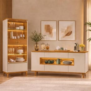 Com design elegante, iluminação LED na cristaleira e portas em vidro que valorizam sua decoração, o conjunto une beleza e funcionalidade.