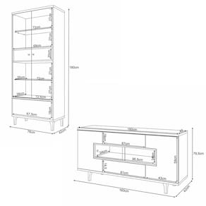 Dimensões da Cristaleira: 76 cm(L) x 180 cm(A) x 42 cm(P);