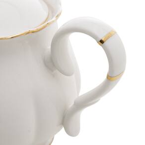 O conjunto reúne bule, açucareiro e leiteira em porcelana branca com detalhes dourados e toques em rosa, criando uma composição charmosa, elegante e acolhedora. Ideal para servir com estilo no dia a dia ou em ocasiões especiais, valorizando bandejas, mesas postas e momentos de receber.