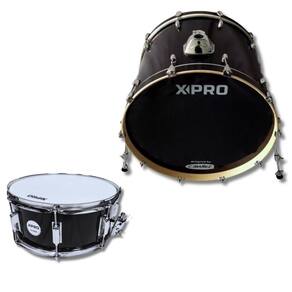 Bumbo 20 x 16 Aro Madeira 10 Afinações Preto Stage X-Pro + Caixa 14 x 6 Casco Madeira 8 Afinações Preta Stage X-Pro