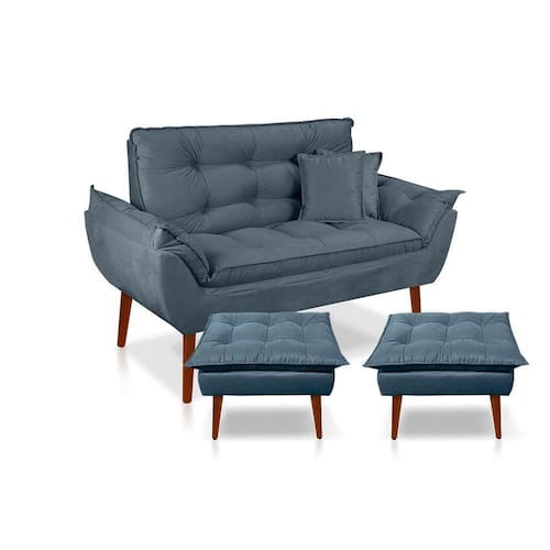 Kit C/ 01 Namoradeira Opala + 02 Puffs Opala + 02 Almofadas Suede Azul Turquesa