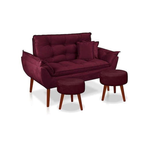 Kit C/ 01 Namoradeira Opala + 02 Puffs Redondo Danny + 02 Almofadas Suede Bordô -