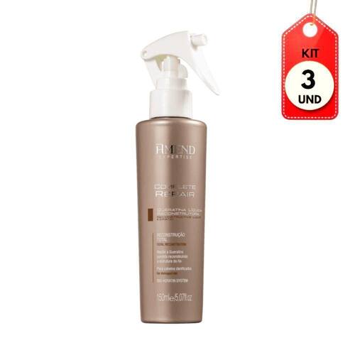 DESCRIÇÃO:Queratina Líquida Complete Repair Amend reestrutura os fios internamente e protege das agressões externas, umidade e dos danos causados pelo calor dos acessórios térmicos, ideal para cabelos danificados.AÇÃO/ATIVOS:Penetra na fibra capilar e recompõe as cadeias de queratina para resgatar a força e a flexibilidade dos fios. Ainda forma uma barreira protetora que evita os danos futuros. Sua fórmula com Bio-Keratin System age na cutícula e no córtex para reconstruir a estrutura de queratina dos fios e proteger contra as agressões externas. Imagem meramente ilustrativa. O produto pode ter variação de cor ou desenho, porém as características gerais são as mesmas especificadas na descrição do produto.MODO DE USAR:Depois de lavar os fios com shampoo e condicionador, passe a queratina do comprimento às pontas. Prossiga com a escovação e finalize com a prancha.ESTE ANÚNCIO CONTÉM: 03 UNIDADES DE AMEND QUERATINA LÍQUIDA RECONSTRUTORA 150MLKit C/03 Amend Queratina LÃquida Reconstrutora 150ml
