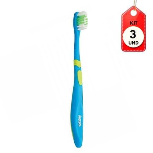 Kit C/03 Belliz Junior Escova Dental DESCRIÇÃO: Escova Dental Kess Junior possui cabeça compacta, 21 tufos, cerdas onduladas que limpam entre os dentes.AÇÃO/ATIVOS: Escova Dental Kess Junior promove uma limpeza mais profunda graças às cerdas macias e onduladas que atingem até as áreas mais difíceis entre os dentes e a gengiva.MODO DE USAR: Juntamente com o gel dental, utilize a escova para higienização bucal.ESTE ANÚNCIO CONTÉM: 03 Belliz Junior Escova DentalKit C/03 Belliz Junior Escova Dental