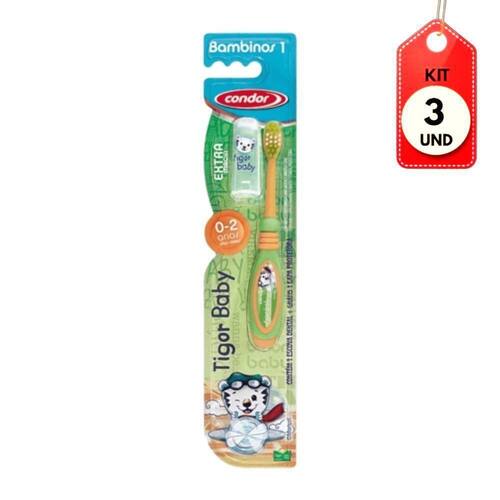 Kit C/03 Condor Tigor Escova C/ Protetor 0 A 2 Anos DESCRIÇÃO: A escova Condor foi desenvolvida especialmente para um cuidado com os primeiros dentinhos.AÇÃO/ATIVOS: Protege as sensíveis gengivas do bebê por meio de suas laterais emborrachadas, cantos arredondados e cabeça pequena.MODO DE USAR: Utilizar para higienização bucal dos pequeninos.ESTE ANÚNCIO CONTÉM: 03 Condor Tigor Escova C/ Protetor 6 A 24 MesesKit C/03 Condor Tigor Escova C/ Protetor 0 a 2 Anos