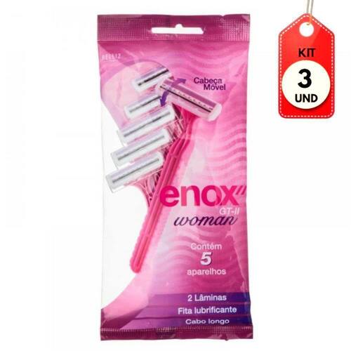 Kit C/03 Enox Woman Gt2 Aparelho De Barbear Feminino C/5 DESCRIÇÃO:Aparelho Descartável Enox 2 Feminino proporciona uma depilação com mais suavidade e maciez.Contem 2 lâminas em aço inoxidável, fita lubrificante, cabo longo e cabeça móvel. Embalagem com 5 unidades.AÇÃO/ATIVOS:2 lâminas em aço inoxidável e fita lubrificante com camomila.MODO DE USAR:Antes de barbear é preciso hidratar bem a pele, em casos de pele oleosa não existe nenhum tipo de cuidado extra. Prepare a pele antes de barbear, limpe a pele diariamente com produtos adequados para o seu tipo de pele, aplique um bom gel barbeador e deixe-o agir um pouco sobre a pele. Após alguns minutos comece a se barbear. Recomendado que você comece o barbear contra o crescimento dos pelos. Desta forma você estará ajudando a puxar o pelo para um corte mais rente, o que resulta em melhores resultados. Após barbear toda a região é preciso que você aplique um gel pós-barba que ajuda a acalma a pele e evitar possíveis irritações que possam aparecer.ESTE ANÚNCIO CONTÉM: 03 UNIDADES DE ENOX WOMAN GT2 APARELHO DE BARBEAR FEMININO C/5Kit C/03 Enox Woman gt2 Aparelho de Barbear Feminino C/5 Marca: Enox Belliz