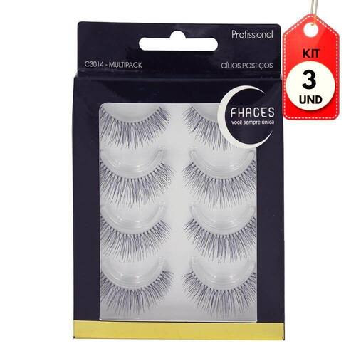 Kit C/03 Fhaces C3014 Cílios Postiços Multipack DESCRIÇÃO:Cílios inteiros produzidos com pelos naturais e um fio de silicone transparente, que após aplicado fica imperceptível nos olhos, além de serem os mais leves do mercado. Imagem meramente ilustrativa. O produto pode ter variação de cor ou desenho, porém as características gerais são as mesmas especificadas na descrição do produto.AÇÃO/ATIVOS:Pelos naturais, aste de silicone e maior leveza ao olhos.MODO DE USAR:Ajuste o comprimento dos cílios postiços cortando as suas extremidades externas se necessário. Aplique a cola Fhaces para cílios na base dos cílios postiços, não aplicar diretamente nas pálpebras. Aguarde aproximadamente 10 segundos até que a cola fique com aspecto grudento. Durante esse tempo faça leves movimentos em forma de arco para facilitar a aplicação posteriormente. Cole cuidadosamente na base dos cílios naturais e pressione até secar. Para facilitar a aplicação, utilize o auxílio de uma pinça.ESTE KIT CONTÉM: 03 UNIDADES DE FHACES C3014 CÍLIOS POSTIÇOS MULTIPACKKit C/03 Fhaces C3014 CÃlios PostiÃos Multipack