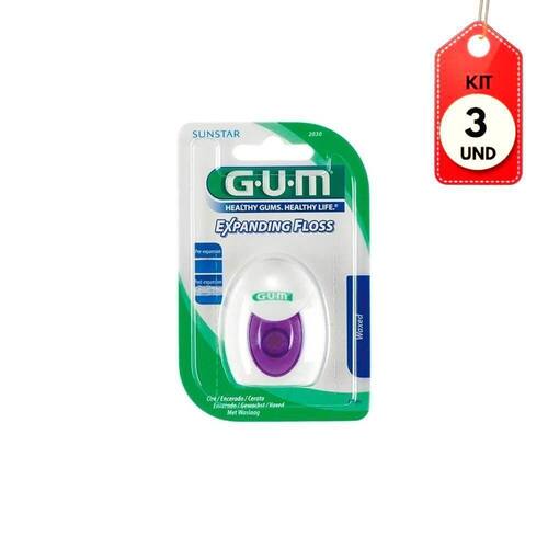 Kit C/03 Gum Expanding Floss Fio Dental 40m DESCRIÇÃO:O fio dental GUM Expanding Floss foi desenvolvido para ajudá-lo a fazer a limpeza entre os dentes com espaços maiores onde fio dental convencional é ineficaz. Também se mostra eficiente na limpeza entre os dentes com espaços regulares. Imagem meramente ilustrativa. O produto pode ter variação de cor ou desenho, porém as características gerais são as mesmas especificadas na descrição do produto.AÇÃO/ATIVOS:Fio dental sem sabor, expansível em contato com a saliva, aumentando a sua área de atuação.MODO DE USAR:Enrole aproximadamente 40 centímetros do fio ao redor de cada dedo médio, deixando uns dez centímetros entre os dedos. Segurando o fio dental entre o polegar e indicador das duas mãos, deslize-o levemente para cima e para baixo entre os dentes.ESTE KIT CONTÉM: 03 UNIDADES DE GUM EXPANDING FLOSS FIO DENTAL 40MKit C/03 Gum Expanding Floss Fio Dental 40m