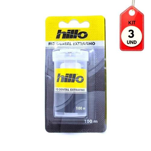 Kit C/03 Hillo Extra Fino Fio Dental 100m DESCRIÇÃO: O uso do Fio Dental deve ser diário, pois a placa bacteriana se forma a cada 24 horas.AÇÃO/ATIVOS: Este produto contribui para: evitar a formação da placa e prevenir o tártaro e as cáries, quando utilizado de acordo com o recomendado pelo Dentista.MODO DE USAR: Enrole aproximadamente 40 centímetros do fio ao redor de cada dedo médio, deixando uns dez centímetros entre os dedos. Segurando o fio dental entre o polegar e indicador das duas mãos, deslize-o levemente para cima e para baixo entre os dentes. Passe cuidadosamente o fio ao redor da base de cada dente, ultrapassando a linha de junção do dente com a gengiva. Nunca force o fio contra a gengiva, pois ele pode cortar ou machucar o frágil tecido gengival. Utilize uma parte nova do pedaço de fio dental para cada dente a ser limpo. Para remover o fio, use movimentos de trás para frente, retirando-o do meio dos dentes. ESTE ANÚNCIO CONTÉM: 03 Hillo Extra Fino Fio Dental 100mKit C/03 Hillo Extra Fino Fio Dental 100m
