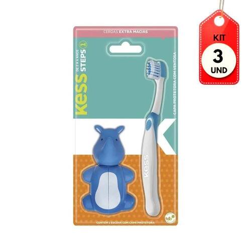 Kit C/03 Kess Steps Escova Dental + Capa Protetora DESCRIÇÃO: A Escova Dental Kess auxilia para uma escovação adequada dos dentes, alcança todos os cantos da boca, proporcionando assim uma higiene bucal eficiente.AÇÃO/ATIVOS: Fácil e confortável de usar, auxilia para uma boca saudável e dentes mais brancos.MODO DE USAR: Utilizar para higienização bucal.ESTE ANÚNCIO CONTÉM: 03 Kess Steps Escova Dental + Capa ProtetoraKit C/03 Kess Steps Escova Dental + Capa Protetora