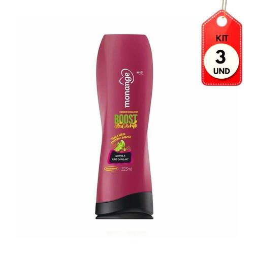Kit C/03 Monange Boost De Crescimento Condicionador 325ml DESCRIÇÃO:Quando estamos satisfeitas com nós mesmas, fica mais fácil escutar a intuição. Inspirado em receitas caseiras, o condicionador Monange BOOST DE CRESCIMENTO tem argila verde, alecrim e babosa para hidratar, dar FORÇA AOS FIOS e prevenir a queda, ajudando você a resgatar sua autoconfiança e seguir seu coração.AÇÃO/ATIVOS:Rico em flavonoides antixoxidantes e auxiliam no crescimento saudável do fio.Seu alto poder de nutrição contribui para o fortalecimento dos fios além de prevenir a queda.MODO DE USAR:Após lavar o cabelo com Shampoo, colocar um pouco do Condicionador na palma da mão. Aplique no cabelo molhado massageie. Deixe agir por alguns minutos e em seguida, enxágue bem.ESTE ANÚNCIO CONTÉM: 03 UNIDADES DE MONANGE BOOST DE CRESCIMENTO CONDICIONADOR 325MLKit C/03 Monange Boost de Crescimento Condicionador 325ml