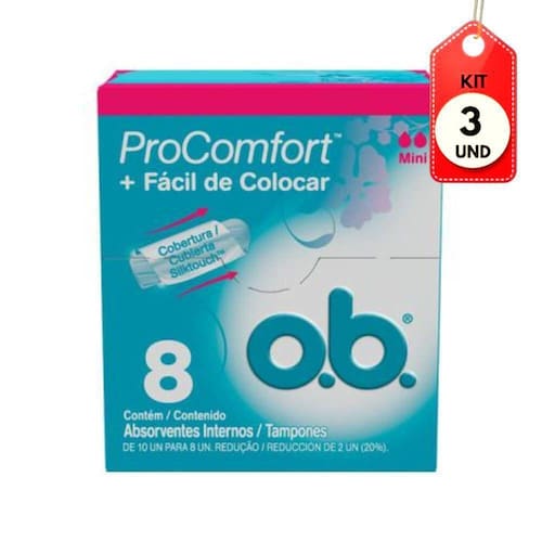 Kit C/03 O.b Pro Comfort Mini Absorvente Interno C/8 DESCRIÇÃO: O Absorvente Interno OB Pro Comfort é fácil de usar pois tem formato mais estreito com a ponta mais fina e se expande lateralmente. Adaptando-se ao contorno do seu corpo, evitando vazamentos e oferecendo máxima proteção. AÇÃO/ATIVOS: Combina com a tecnologia dos canais curvos que absorvem o fluxo para uma proteção segura. Com a exclusiva cobertura (sem sugestões) que desliza melhor para uma colocação mais fácilMODO DE USAR: Veja guia explicativo no interior da embalagem.ESTE ANÚNCIO CONTÉM: 03 Unidades de O.B Pro Comfort Mini Absorvente Interno C/8Kit C/03 O.B Pro Comfort Mini Absorvente Interno C/8