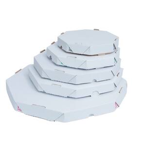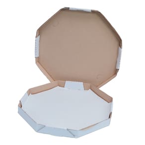 EMBALAGEM OITAVADA NO. 40 DE PIZZA É FABRICADA DE PAPELÃO ONDULADO COM UMA FACE NA COR BRANCA OUTRA NA COR PARDA. IMPRESSÃO PADRÃO EM DUAS CORES. UMA EMBALAGEM QUE DIFERENCIA PELO BAIXO CUSTO E PRATICIDADE. É A CAIXA OITAVADA DE MENOR CUSTO ENTRE AS OPÇÕES DE CAIXAS OITAVADAS DE NOSSA EMPRESA. É UM PRODUTO QUE COMPETE POR PREÇO. Marca: TAMAROZZI