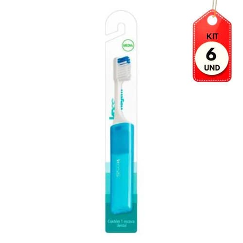 Kit C/06 Kess P/ Viagem Escova Dental Média DESCRIÇÃO: Todos os produtos clia são feitos sob rígidos controles de qualidade para a limpeza diária de seus dentes seja a mais eficiente possível.AÇÃO/ATIVOS: A cabeça da escova de dentes possui cantos arredondados e cerdas flexíveis para não agredir a boca, o cabo da escova possui um segundo tipo de material que garante maior controle e melhor manuseio na escovação, as cerdas arredondadas não agridem as gengivas delicadas e o esmalte dos dentes.MODO DE USAR: Escovar os dentes 3 vezes ao dia ou seguir recomendação do seu dentista.ESTE ANÚNCIO CONTÉM: 06 Kess P/ Viagem Escova Dental MédiaKit C/06 Kess P/ Viagem Escova Dental MÃdia