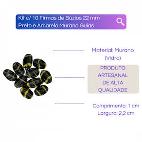 Kit c/ 10 Firmas de Buzios 22 mm Preto Amarelo Murano Guias