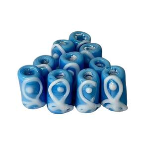 O Kit com Firmas Desenhada 17 mm Iemanjá Azul Murano da Bialluz é ideal para fazer sua guia de proteção e trará muita paz, intuição e proteção do seu Orixá. Produzidas em Vidro Murano possuem alta qualidade e longa durabilidade. Tem formato cilíndrico com furo passante no meio com espessura suficiente para variados tipos de cordões.