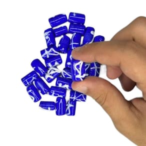 O Kit com Firmas Desenhada 17 mm Ogum Azul Murano da Bialluz é ideal para fazer sua guia de proteção e trará muita paz, intuição e proteção do seu Orixá. Produzidas em Vidro Murano possuem alta qualidade e longa durabilidade. Tem formato cilíndrico com furo passante no meio com espessura suficiente para variados tipos de cordões.