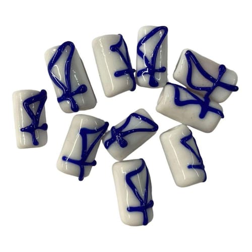 O Kit com Firmas Desenhada 17 mm Oxaguiã Azul Murano da Bialluz é ideal para fazer sua guia de proteção e trará muita paz, intuição e proteção do seu Orixá. Produzidas em Vidro Murano possuem alta qualidade e longa durabilidade. Tem formato cilíndrico com furo passante no meio com espessura suficiente para variados tipos de cordões.