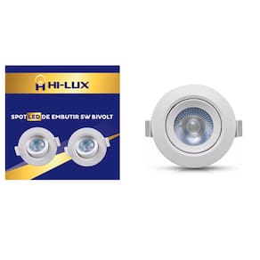 Voltagem: AC100-240V ( Bivolt ) Angulo de abertura: 36 graus Temperatura de trabalho: -20 a 45 Graus Célsius Tempo de uso aproximado: 15.000 horas Dimensões: 90x30mm Potencia: 5w Marca: HI-LUX LED