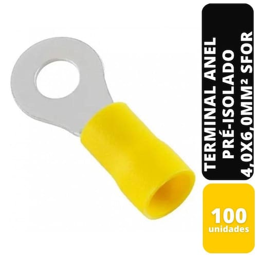 Kit c/100 Terminal Anel Amarelo Pré-Isolado 4,0x6,0mm² Sfor