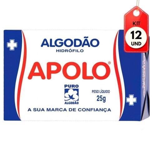 Kit C/12 Apolo Algodão Caixinha 25g DESCRIÇÃO: Produzido a partir de rigorosa seleção de fibras naturais, 100% hidrofilizado, que asseguram qualidade, higiene, maciez e alto poder de absorção de líquidos aquosos e gordurosos.AÇÃO/ATIVOS: Algodão 100% hidrofilo, macio e extra-absorvente. Use na higienização, na aplicação de cosméticos, remoção de maquiagem e esmalte.MODO DE USAR: Aplicar no algodão o produto a ser utilizado e espalhar sobre a pele.ESTE ANÚNCIO CONTÉM: 12 Apolo Algodão Caixinha 25gKit C/12 Apolo AlgodÃo Caixinha 25g