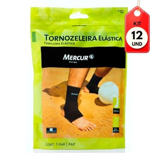 Kit C/12 Mercur Tornozeleira Neoprene P DESCRIÇÃO: A Tornozeleira Esporte Mercur proporciona estabilização à região do tornozelo, diminuindo os riscos de torções e contusões. Devido à abertura no calcanhar, oferece melhor ajuste e conforto. Ideal para práticas esportivas.AÇÃO/ATIVOS: Proporciona estabilidade ao tornozelo, garantindo mais segurança, além de ter acabamento em viés, garantindo benefícios como terapia de calor e relaxamento da musculatura. A abertura no calcanhar evita problemas de sensibilidade, pois por ali passam vasos sanguíneos, nervos e o tendão muscular. E não para por aí! Ela é fabricada em Neoprene, que retém o calor corporal.MODO DE USAR: Puxe a tornozeleira pelo pé, até que o calcanhar encaixe na abertura.ESTE ANÚNCIO CONTÉM: 12 Mercur Tornozeleira Neoprene PKit C/12 Mercur Tornozeleira Neoprene P