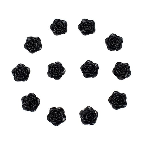 Kit C/12 Miçangas em Resina Flor Rosa Negra 2 cm
