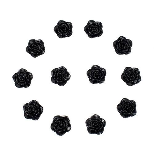 Kit C/12 Miçangas em Resina Flor Rosa Negra 2 cm Kit C/12 Miçangas em Resina Flor Rosa Negra 2 cm
