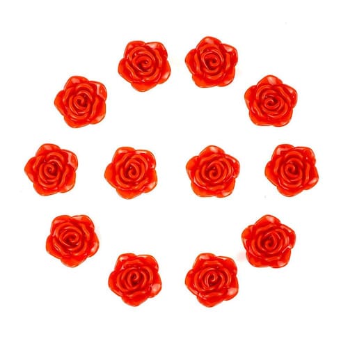 Kit C/12 Miçangas Em Resina Flor Rosa Vermelha 2 Cm