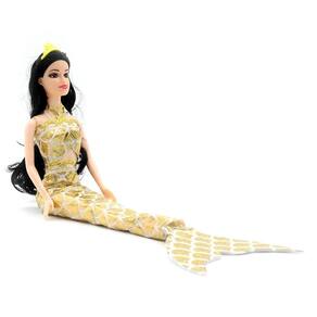 A Boneca Sereia tem 34 cm, vem com um lindo cabelo longo, uma coroa e uma linda calda de sereia em cores metalizadas. "