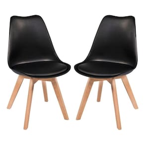 Kit C/2 Cadeiras Leda Charles Eames, Saarinen Wood Com Almofada Preta