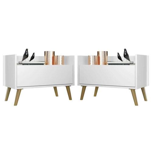 O Kit com 2 Mesas de Cabeceira 60 cm com Pés Retrô Multimóveis é uma solução prática para você deixar seu quarto mais bonito e complementar seu ambiente. Produzido em MDP com acabamento acetinado (cerca de 20% de brilho), que garante maior durabilidade e facilidade na limpeza, possui 1 gaveta com amplo espaço interno e corrediças metálicas que proporcionam mais leveza no manuseio. Os pés retrô, em polipropileno, dão um charme especial ao móvel deixando-o com um visual leve e permitindo você compor um ambiente com ar vintage e moderno ao mesmo tempo. Seu design clean permite que seja utilizado em diferentes ambientes, adaptando-se conforme sua necessidade.