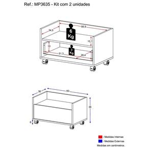 Dimensões do produto montado: Altura: 36cm | Largura: 60cm | Profundidade: 36cm *Você pode consultar as medidas internas na imagem técnica do produto.