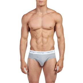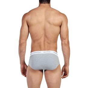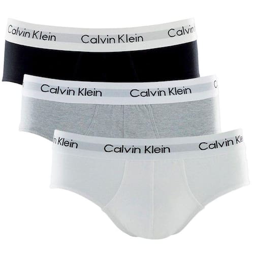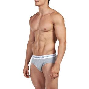 Kit contendo 3 unidades de cuecas Calvin Klein modelo Brief (Slip) confeccionadas em Algodão e com elástico aparente personalizado de 35 milímetros.