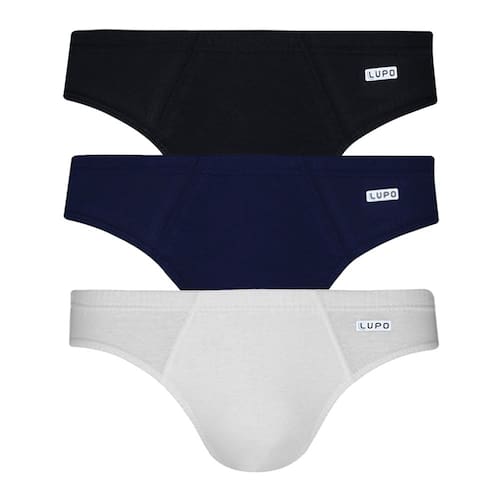 Kit contendo 3 cuecas Lupo modelo Slip fabricadas em malha de Algodão super leve e macio. Desenvolvida especialmente para quem não abre mão do conforto do algodão, possui modelagem anatômica que se adapta perfeitamente ao corpo. Cintura em elástico leve, parte frontal dupla e cava das pernas mais alta.