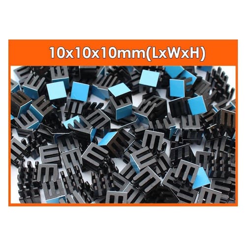 Kit C/ 3 Dissipador De Calor Autoadesivo 10mm X 10 mm X 10mmAmplamente utilizado para chipset, computador pc chipset, power ic, dispositivo elétrico de energia, dispositivos de luz led, Ideal para utilização em projetos com pequeno espaço disponível e onde é necessária eficiente troca de calor, pode ser utilizado nos mais diversos tipos de componentes eletrônicos.Antes de comprar verifique se o tamanho do dissipador de calor se encaixa no seu componente. Especificação Nome do produto: Dissipador de CalorMaterial: AlumínioCor: Tons de PrataTamanho total: 10mm x 10mm x 10mmPeso: 2.8g/pcs