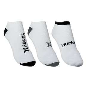 Kit contendo 3 pares de meia esportiva invisível Hurley. Modelo com solado atoalhado, calcanhar verdadeiro, faixa central par melhor ajuste ao pé e punho soft e confortável. Ideal para o seu visual esportivo, aparecendo apenas 1cm acima do calçado.