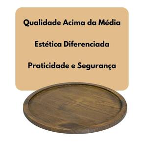 Diâmetro da bandeja de madeira com borda: 40cm Diâmetro da bandeja de madeira sem borda: 35cm Altura: 1.5 cm Peso: 1500gr. Material: Madeira Pinus Elliottii (Madeira do Pinheiro-Americano) SOBRE A FABRICANTE: