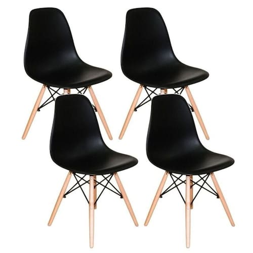 Kit C-4 Cadeiras Eiffel Eames Pretas Pés Palito - Preto