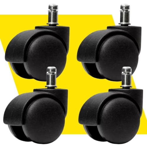 * ATENÇÃO: Este pino de encaixe é padrão em aproximadamente 95% dos modelos de cadeira, todavia recomendamos remover um de seus rodízios e verificar se é este mesmo padrão de sua cadeira, de pino com diâmetro de 11mm e um “anel” no topo, conforme fotos do produto.