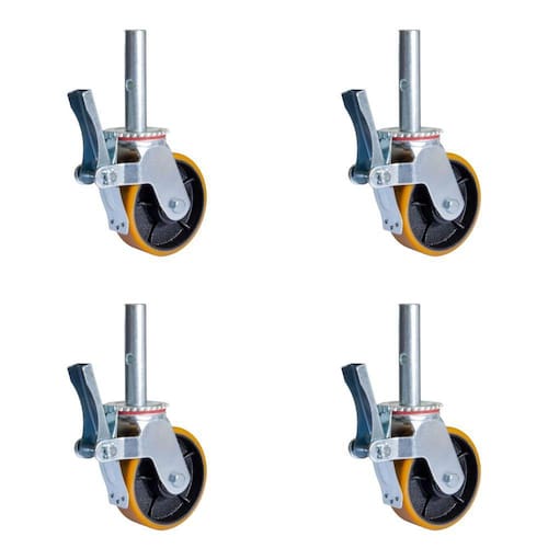 "O Kit de 4 Rodízios com Freio foi especialmente projetado para facilitar o deslocamento de torres de andaime. Cada rodízio suporta uma carga de até 225 kg por rodizio, proporcionando a mobilidade necessária enquanto mantém a segurança do usuário como prioridade. Com um excelente sistema de freio que atende às exigências normativas, esses rodízios garantem estabilidade e firmeza durante a utilização.Características:Diâmetro da roda: 6 PolegadasLargura da roda: 2 mmTamanho da base: 120 mmAltura: 186 mmHaste: 140 mmRolamento: 17 mmEixo: 1/2 polegadaCapacidade de carga de até 250 Kg por rodízioGarantia 12 meses Conteúdo da Embalagem4 Rodízios com Freio para Andaime 6"" Poliuretano Colson GLEF.62.PF.E - 4058Com o Kit de 4 Rodízios com Freio para Andaime 6"" Poliuretano Colson GLEF.62.PF.E - 4058, você terá a mobilidade necessária para mover seus andaimes com facilidade e segurança. Aproveite a garantia de 12 meses e tenha a certeza de adquirir um produto durável e confiável para suas necessidades."