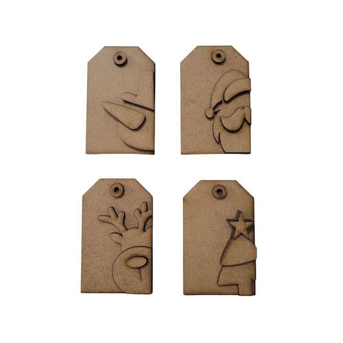 Kit c/ quadro Tags de modelos diferentes com apliques sobrepostos em camadas- em mdf cru 3mm
