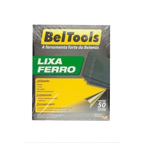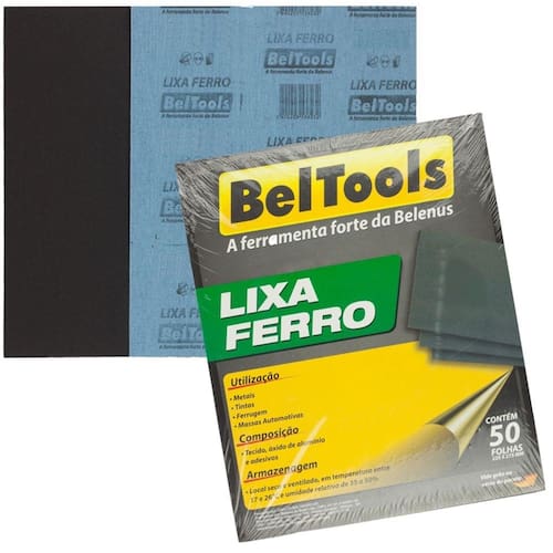 Dimensão:225mm x 275mm. Tipo: Ferro. Grão: G 120. Tipo de grão: Óxido de alumínio. Tipo de costado: Base pano. Conteúdo: Pacote com 50 lixas.