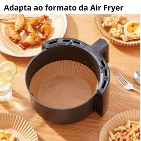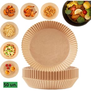 A solução ideal para preparar o seu alimento saudável dentro da air fryer sem ter que fazer o trabalho chato de limpeza dela depois. O papel de air fryer evita o contato direto do alimento com a bandeja do air fryer. Dessa forma, acaba protegendo o seu equipamento dos resíduos dos alimentos, gorduras e temperos. Além disso, traz economia de tempo na limpeza e não afeta em nada no sabor do alimento. Após o uso, basta apenas descartá-lo no lixo. Seja para assar ou fritar o seu alimento, não se preocupe mais em ter que ficar limpando o seu air fryer depois de cada uso. O formato do nosso papel se assimila a uma forma redonda e se encaixa muito bem nos air fryers do mercado, atendendo os equipamentos de 3 a 5 litros. O papel é muito fácil de usar uma vez que já vem no formato de uma forma sendo necessário apenas colocar o alimento dentro e inserir dentro da air fryer. O papel possui 3 camadas e é antiaderente, resistente a óleo e a água. Por questão de segurança, recomendamos nunca ultrapassar a temperatura acima de 220 graus do seu air fryer. Além do uso em air fryers, também pode ser utilizado também dentro de fornos, microondas, panelas vaporizadoras também. Por ser leve e super prático, pode ser utilizado como prato para servir a comida na mesa. Depois de utilizado, basta somente descartá-lo no lixo. O uso do papel não irá afetar a eficiência do seu air fryer. A circulação do ar quente continuará passando calor para o papel, que posteriormente irá passar para os alimentos. Atenção: nunca pré-aqueça o seu air fryer com o papel dentro. Isso pode queimar o papel e iniciar fumaça. É muito importante que o alimento colocado dentro do papel tenha um peso suficiente para manter o papel firme dentro do air fryer. Caso contrário, o papel pode voar dentro do equipamento e queimar. Ficha técnica: quantidade: 50 unidades uso: air fryers de 3 a 5 litros medidas: 20 diâmetro externo x 16 diâmetro interno x 4,5 altura temperatura máxima suportada: 220c cor: bege