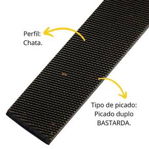 Pacote com 06 unidades. Possui picado duplo e corte grosso que proporciona maior desbaste. Indicação: Indicada para desbastar metais em superfícies planas. Dureza: 58-62 HRC. Comprimento: 12" - 300mm. Cabo: Não. Perfil: Chata. Tipo de picado: Picado duplo - MURÇA.