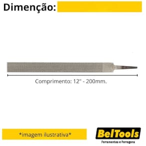 Descrição: Possui um dos lados chato e outro arredondado possibilitando utilização em superfícies côncavas ou planas. Indicação: Indicada para desbaste de madeira em superfícies planas ou côncavas. Comprimento: 12" - 200mm. Cabo: Sem cabo. Perfil: Chata